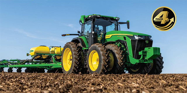 8R拖拉機(jī)配備符合國(guó)四排放標(biāo)準(zhǔn)的約翰迪爾 9.0升高壓共軌發(fā)動(dòng)機(jī),
